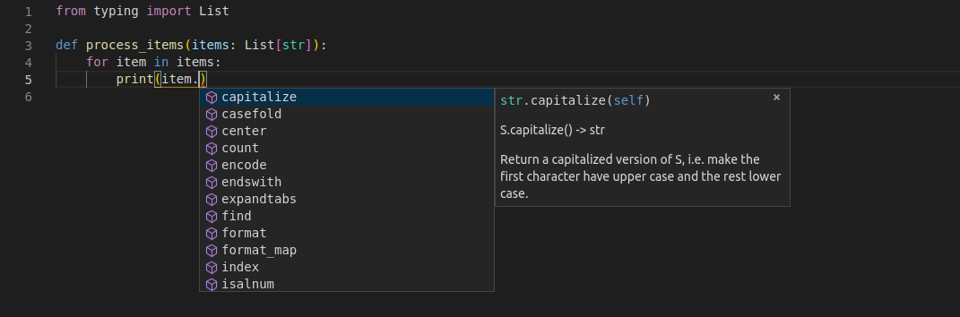 Et pourtant, l'éditeur sait qu'elle est de type str et pourra donc vous aider à l'utiliser.